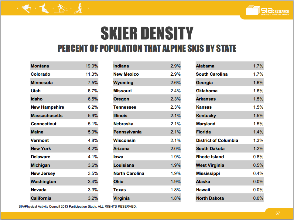 Initially I had a look at the snowboarding stats by state, but strangely this seems to be a skier only phenomena. Does anyone know why?