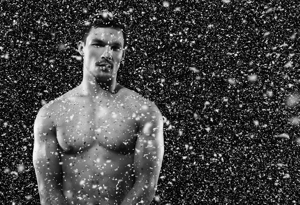 One of the first things Vic did was head to Maxim and get dressed up like a homoerotic Russian submariner dishing up a buttery bread roll on a snowboard.